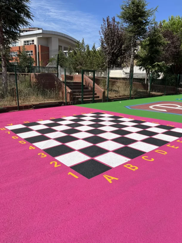 Anaokulu oyun alanları, sadece tek renkli zeminlerden oluşmamalıdır. Çizgi çalışmaları, haritalar, sayı dizileri veya tematik oyun alanları (yarış pistleri, satranç tahtası vb.) tasarlanır. Bu aşama, yaratıcılığın güvenlik ve eğitim gereksinimleriyle birleştiği yerdir.