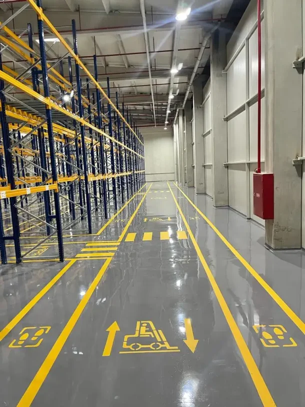 En önemli fayda güvenliktir. Görünür ve doğru renklendirilmiş çizgiler, makine operatörlerinin görüş alanını netleştirir. Yüksek görünürlüklü yaya yolları, çarpışma riskini azaltırken, tehlike bölgelerinin belirginleştirilmesi, çalışanların yetkisiz alanlara girmesini engeller. Bu durum, olası iş kazası maliyetlerini ve sigorta primlerini düşürmede doğrudan rol oynar.
