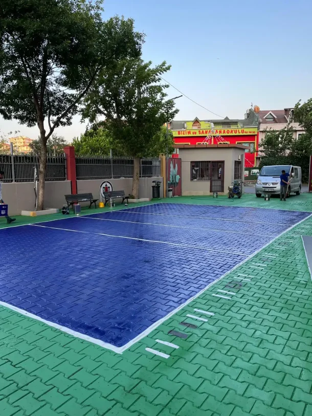 Bu aşamada mevcut zeminin durumu, gerekli onarım miktarı, zemin türü (asfalt, beton vb.) ve beklenen trafik yoğunluğu analiz edilir. Okul yönetimi ile görüşülerek hangi fonksiyonel alanlara (oyun, spor, dinlenme) öncelik verileceği belirlenir.