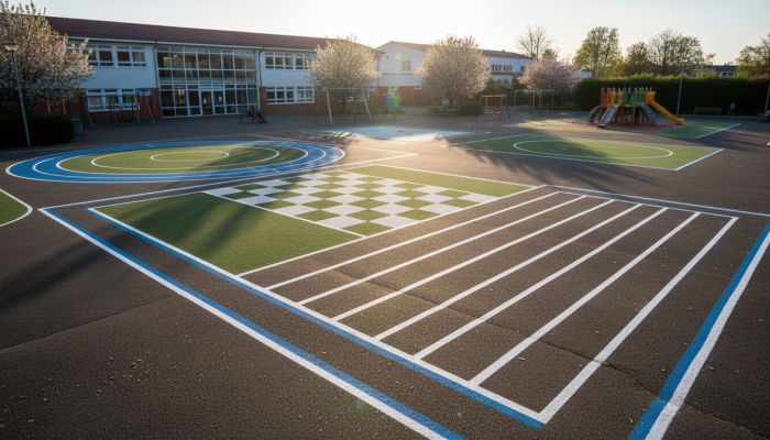Okul zeminindeki çizgiler, sadece alanları ayırmaz, aynı zamanda öğrencilerin zihinsel gelişimine de katkı sağlar.