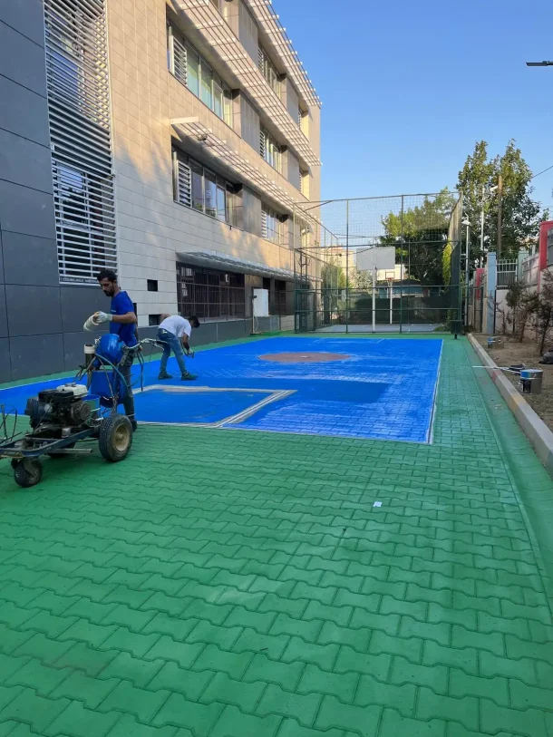 Kapalı alan zeminleri (spor salonları, koridorlar) için genellikle epoksi veya poliüretan bazlı boyalar kullanılır. Bu sistemler, mükemmel yapışma gücü sunar, kimyasal dayanıklıdır ve kaymaz yüzeyler oluşturma imkânı tanır.
